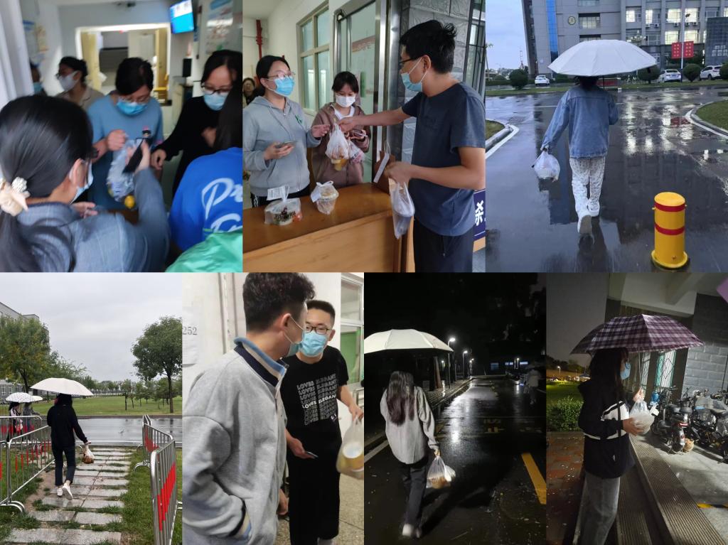 按照学院切实保障静态管理人员的三餐供应的安排,刚刚完成宿舍搬迁的同学们积极响应号召,全员组建临时送餐志愿服务队伍,迅速投入工作,241名志愿者点对点帮扶第二批返校同学,连续三天提供送餐服务。他们化身“送餐达人”,从南、北校区食堂领取到三餐,便马不停蹄地向帮扶同学所在楼宇奔去,宁可自己错过最佳吃饭时间,也要给同学们送去饭菜,此时他们心中只有一个念头:“一定要赶快将热饭热菜送给静态管理的同学们!”他们戴好口罩,做好防护措施,取餐完毕后打包送到正在静态管理的同学手中,确保“人人有对接,餐餐有保障”。