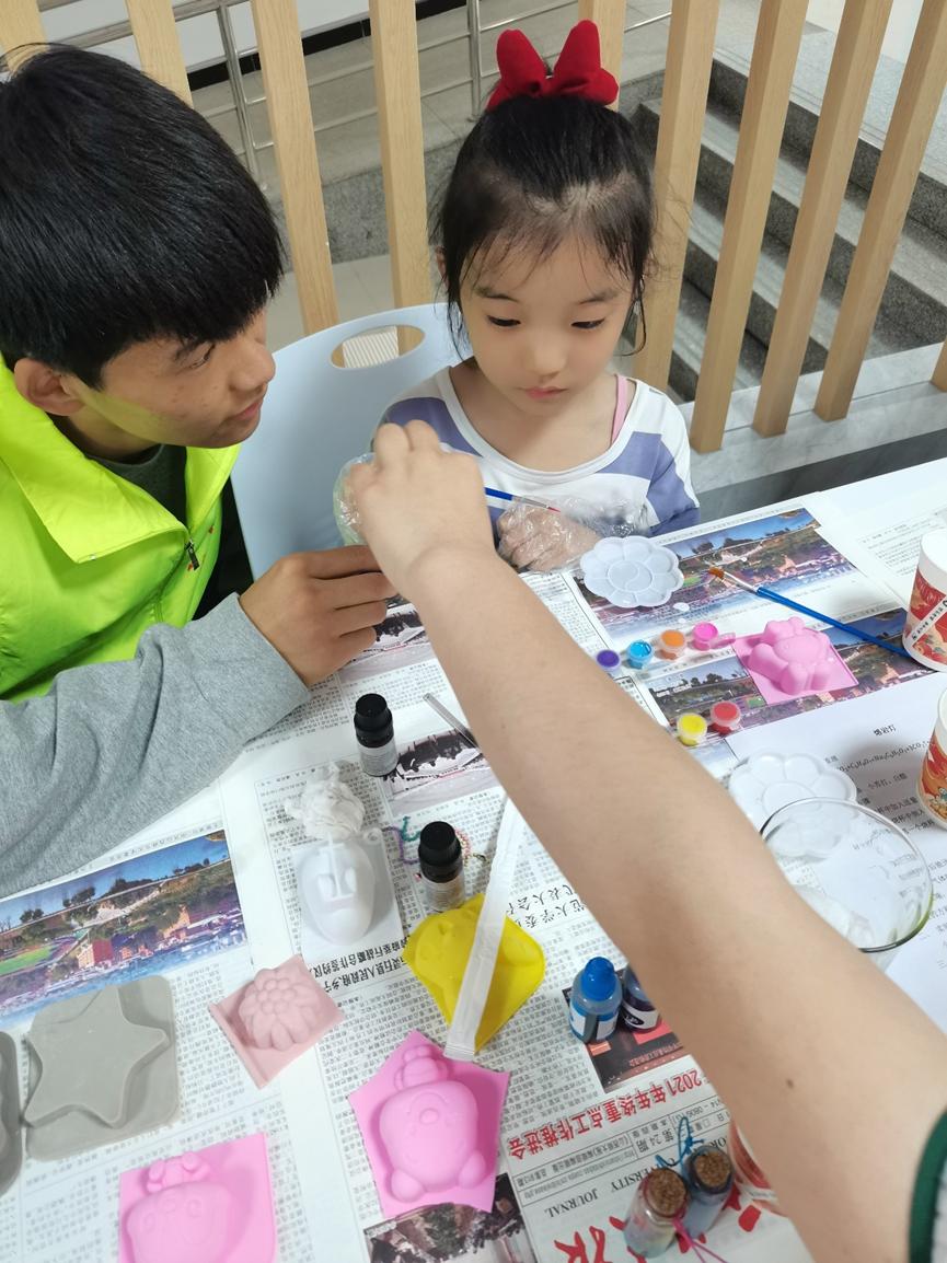此外,学院还为小朋友们安排了独具化学特色的手工DIY活动环节,由志愿者们带领小朋友们制作石膏娃娃、水晶滴胶、香薰挂牌、许愿瓶等手工艺品,最后,小朋友们带着自己亲手制作的小工艺品走出了实验室。
