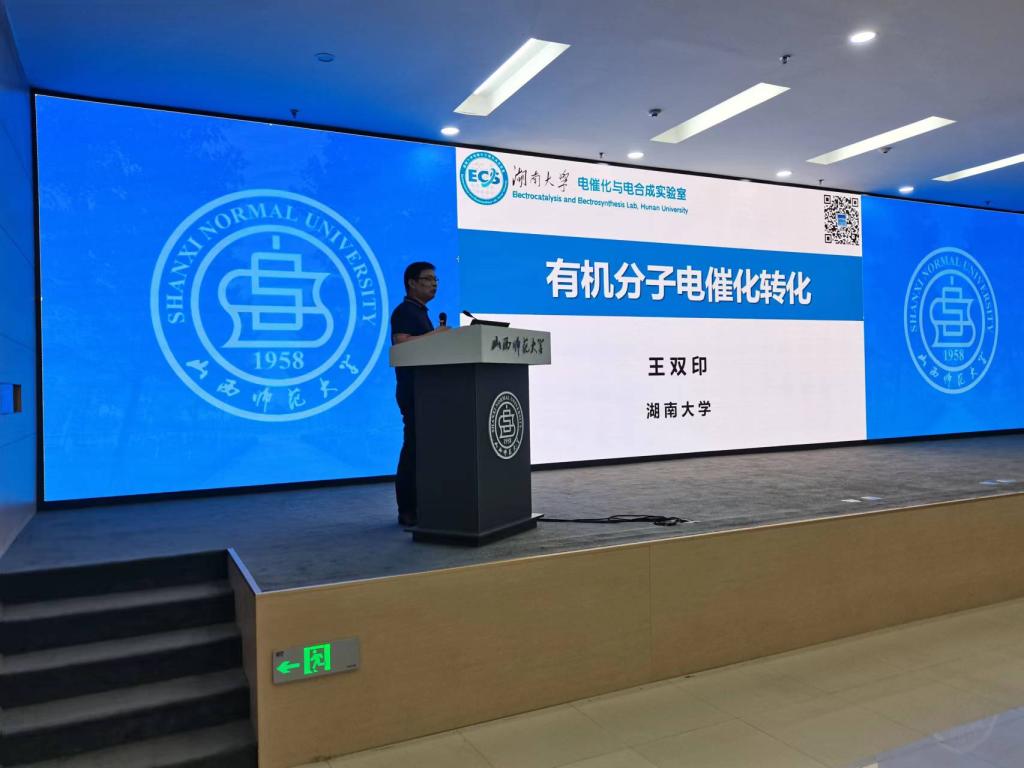 近年来,王双印教授在有机分子电催化转化方面取得了系统性的创新成果。在报告中,王双印教授详细地介绍了其课题组的最新研究成果和进展,并以“气体小分子的电催化碳氮偶联”为重点进行了详细的讲解,并向与会师生分享了研究思路。基于气体小分子电催化偶联的研究基础,其课题组又拓展了亲核试剂电催化氧化和生物质电催化转化等方面的工作,明确了亲核试剂电催化氧化的氢缺陷循环机制和生物质电催化过程中催化剂的几何位点效应。
