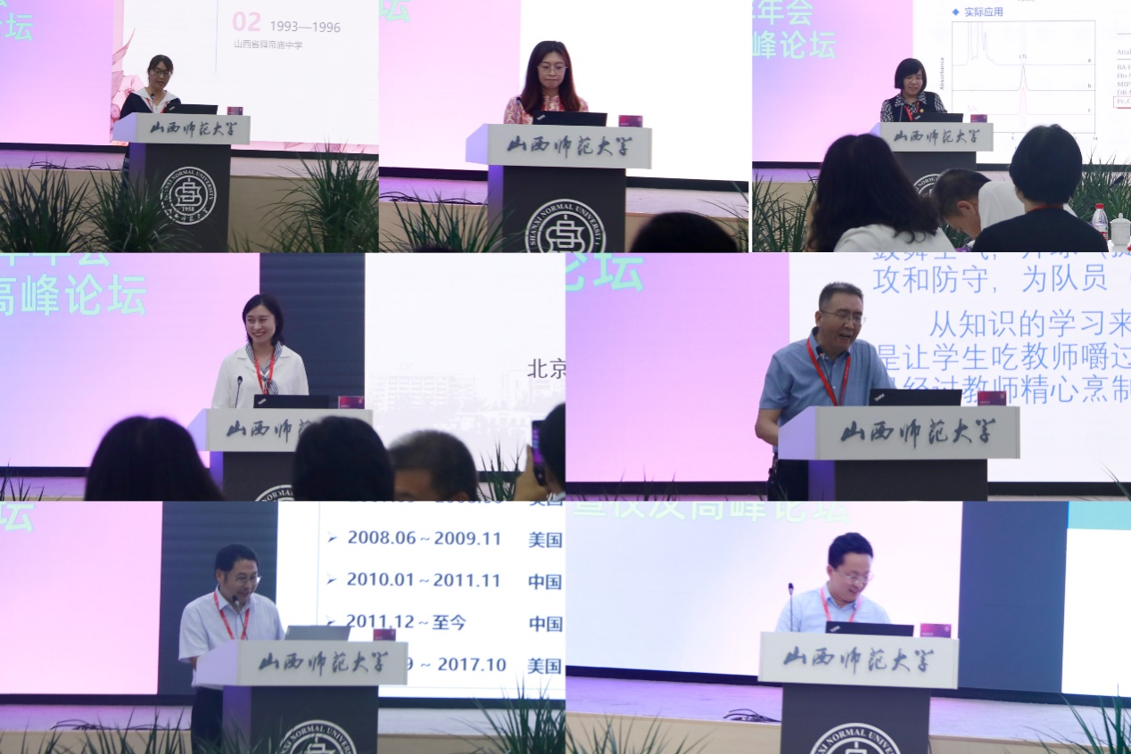 “校友高峰论坛”中,各届杰出校友代表受邀作了学术报告。张献明分享了自己的科研之路,用自己几十年潜心研究、矢志求索的奋斗历程,展现了一名科研工作者在坚韧中所迸发出的磅礴力量;临汾第一中学校副校长陕光以“匆匆那些年”为题追忆了个人成长生涯,感念师大赋予师大学子的丰富精神内涵;太原市第四十八中学校教师杨仁茂以高中化学实验教学为例,阐述了基于学科核心素养的化学课程教学功能与课程开发,呈现了独属于化学的魅力。西安交通大学教授李鹏飞、南京大学教授郭少华、北京林业大学教授薛智敏等11位校友先后进行了主题分享,展示了各自领域的课题研究思路以及未来的发展与应用,为与会师生带来了一场精彩的学术盛宴。