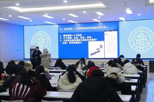12月15日,山西省特级教师、鲁教版高中化学教材核心作者、山西大学附属中学晋中学校高中部负责人赵河林老师应邀在北区二号教学楼报告厅做题为“教师的劳动是什么”主题讲座。本次报告由新葡的京官网副院长薛冰纯主持,即将走向实习岗位的大三本科生与部分公费师范生参加了讲座。